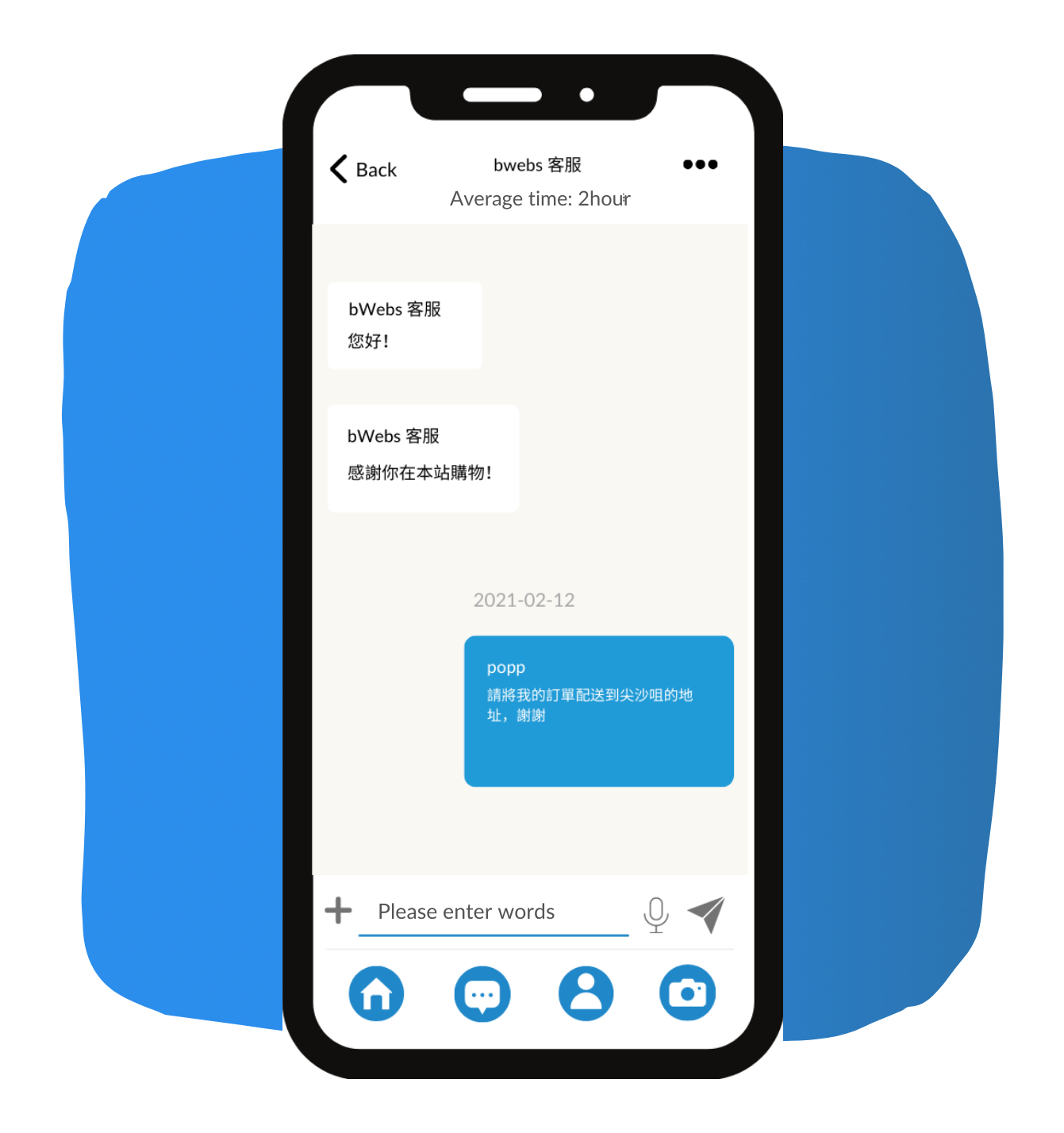 bChat allows you to communicate with the customers or shop owners fast and safely on mobile app or web page.